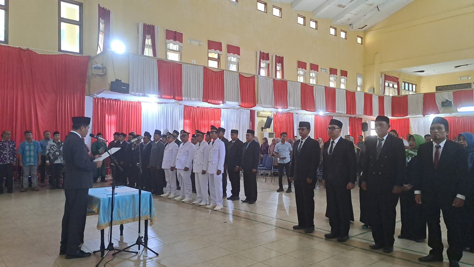 ‎Sebelumnya, diundangan tertulis pejabat yang dilantik untuk hadir  pukul 10.30 Wib-selesai, hanya saja pantauan wartawan langsung, sejumlah pejabat telah hadir  di Gedung rumah agam sesusi dengan waktu yang sudah di tentukan  namun  prosesesi pengambilan sumpah jabatan dilaksanakan pukul 11.58 Wib.