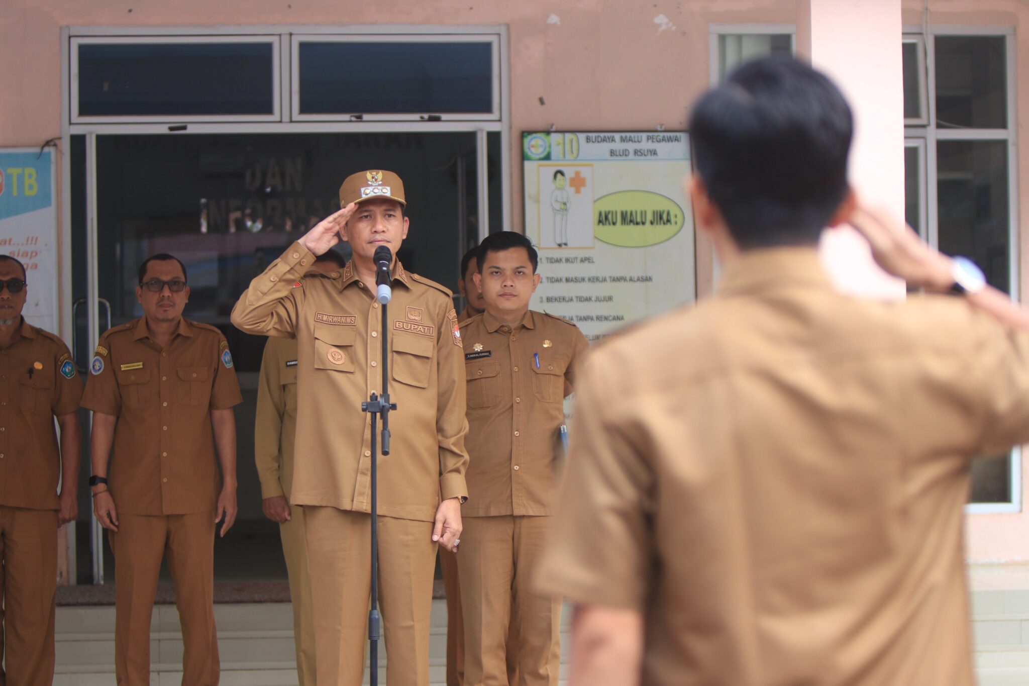ACEH SELATAN, Bersuarakita – Bupati Aceh Selatan, H. Mirwan MS, SE., M.Sos., bertindak selaku Pembina Apel ASN di lingkungan Rumah Sakit Umum Daerah dr. H. Yuliddin Away (RSUDYA) Tapaktuan, pada Selasa (15/4) pagi.
