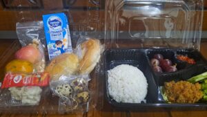 Jumat, 27 Februari 2026: roti kacang hijau, dimsum ayam, susu UHT, dan apel.