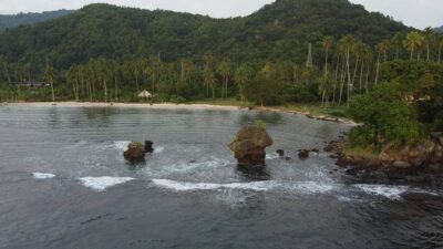“ Kami berada di antara perbatasan paya pelumat dengan kemumu Hilir ini kayaknya boleh dibilang ini namanya pantai surganya tersembunyi di Aceh Selatan nih karena di sini ada beberapa daya tariknya nih ada bebatuan di laut yang hampir mirip ya boleh kita bilang mirip dengan pantai Bangka Belitung,” ujar Muchsin saat dilokasi bersama rekan – rekan komunitas wisata Tuantapa Aceh Selatan.